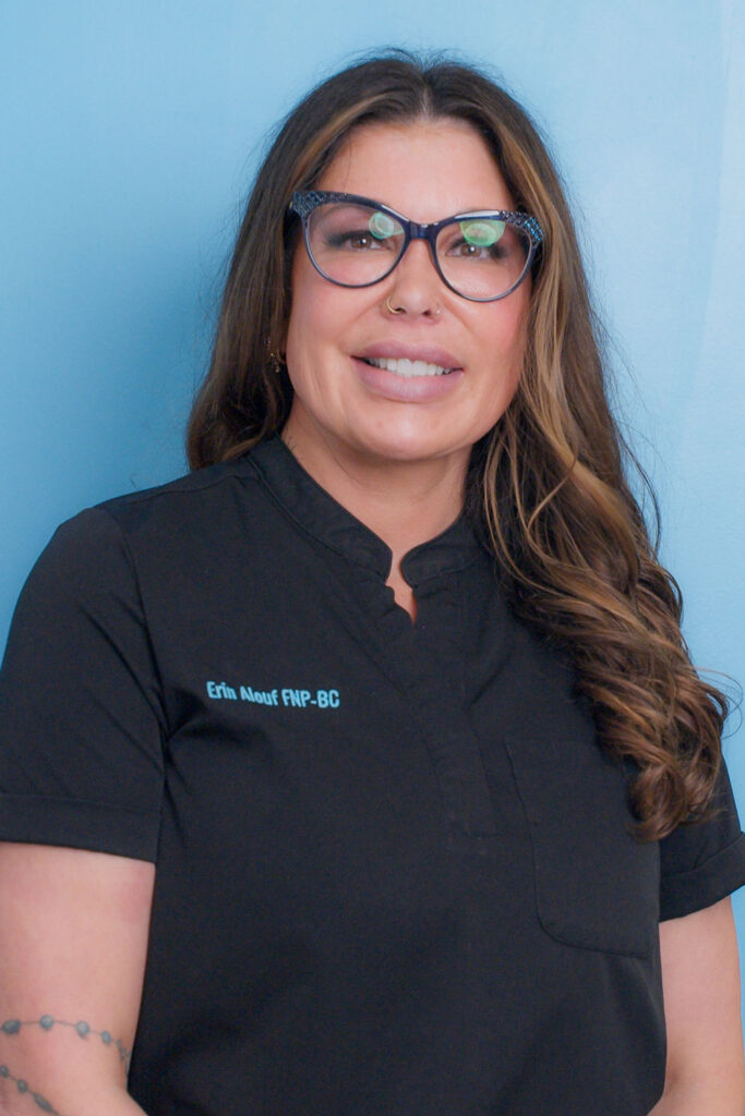 Erin Alouf started working in cosmetic surgery in 2004, alongside Dr. Gregory Alouf at Alouf Aesthetics in Salem, VA. She graduated from Roanoke College with a bachelor’s degree in business and a minor in healthcare administration. Erin returned to school to pursue her love for medicine and graduated as a registered nurse in 2016. Then, immediately after graduating and passing the state nursing board certification, she enrolled in the Family Nurse Practitioner (FNP) Master of Nursing Science program at Simmons University. She completed the FNP program in 2019 and worked at Alouf Aesthetics in Salem, VA until the summer of 2022. She has extensive training and experience in injectables, lasers, permanent cosmetics, and surgical care. Erin is currently enrolled in the Doctor of Nursing Practice program at Simmons University and will graduate in 2024. Erin’s true passion is helping others.